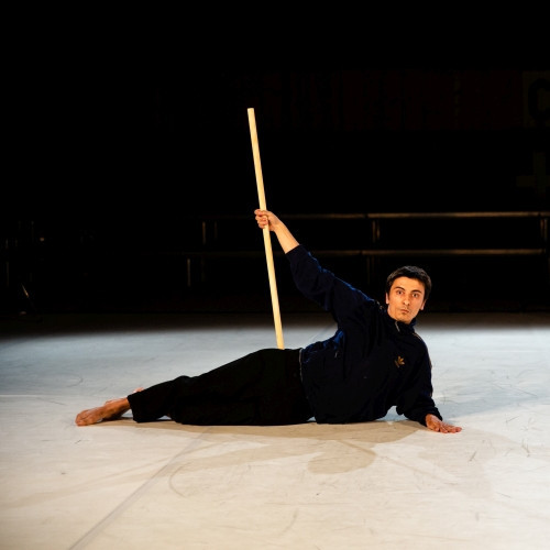 The fragility and vulnerability of the iron rod can only be felt through thin skin. Meditative movement installation, images that burn into the retina of your eye.