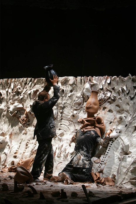 And so… the expression of an encounter, a double confrontation with the clay, assuming risk and an experience in sharing, the opening of a new space, a new territory, mobilising the senses and amalgamating dance, theatre and the visual arts. And then sound and light.” Myriam Bloedé