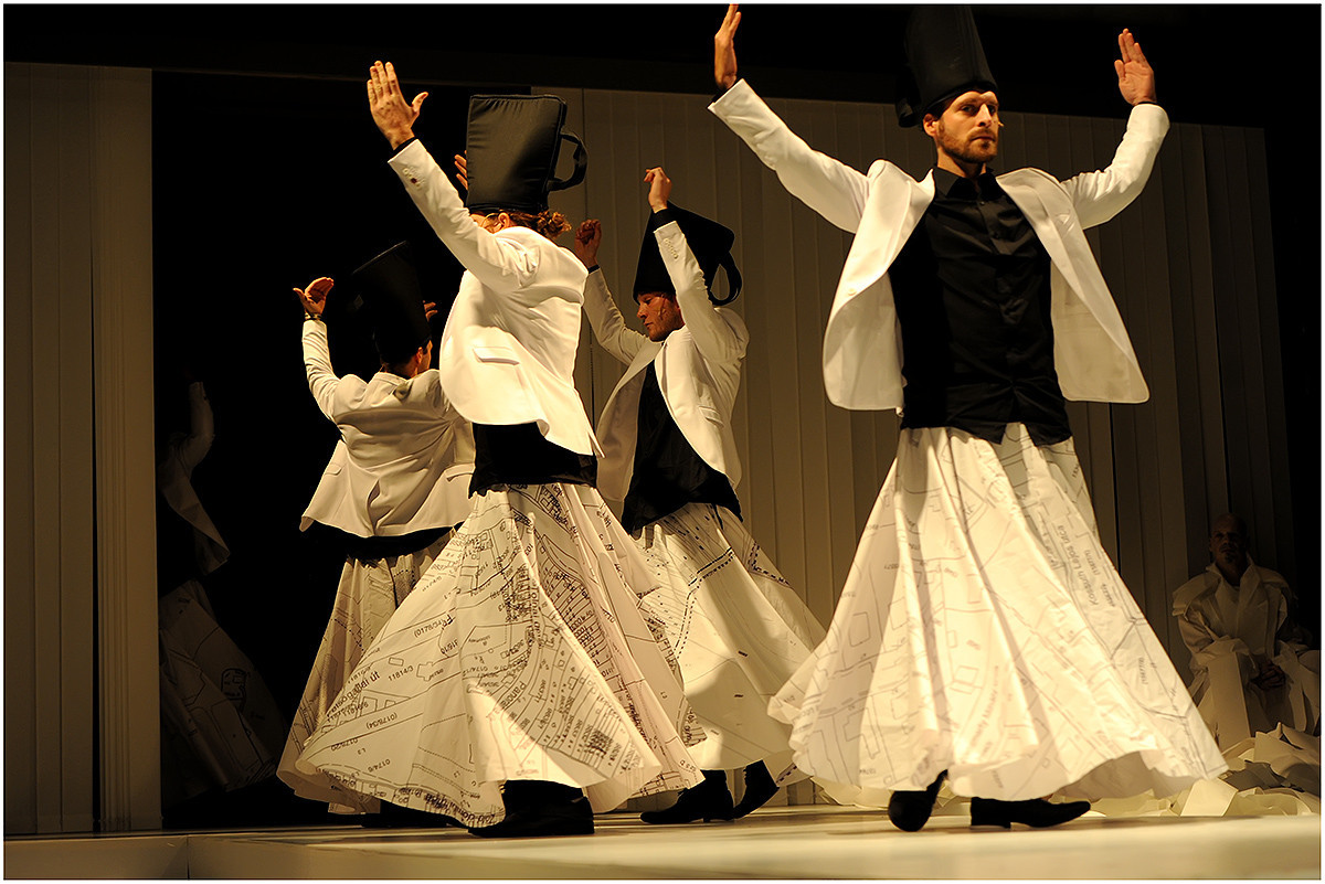 "A Soharóza kórus tagjai extravagáns ruhákban járják az adminisztrációs köröket, miközben átköltött népdalokat énekelnek, elektronikus zenei alapokra."