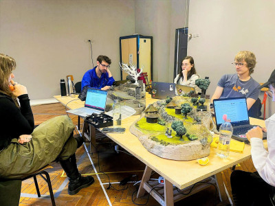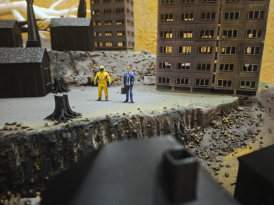 This time, the directors step onto the stage, using the power of their creative and research experience—and of their friendship—to rewrite the myth of capitalism. Combining video, tabletop miniatures, mockumentary, and lecture performance, the production explores what lies on the horizon of the system and beyond.