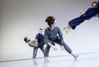 TIME TAKES THE TIME TIME TAKES is a physical dynamic conversation through movement repetitions and pendulum leitmotiv that embodies mechanisms measuring time and space. A journey of dangling movements that burst into different encounters evolving towards a perpetual mobile. An ongoing wheel that suggests time as a continuum.