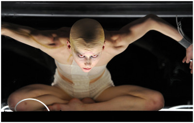 Locked Within Eternity is not merely a repetition of the language used in the piece entitled Living Space (1986), but rather its reshaping through the inclusion of Rita Góbi's personality and gestures and the confrontation with the changes in thought, world-view, metaphysics and technology that have since taken place. Locked Within Eternity offers an experience of the existence of body and space on a level of which we have grown unaccustomed to thanks to our falsely humane civilization, societal socialization and contemporary fast-food culture.