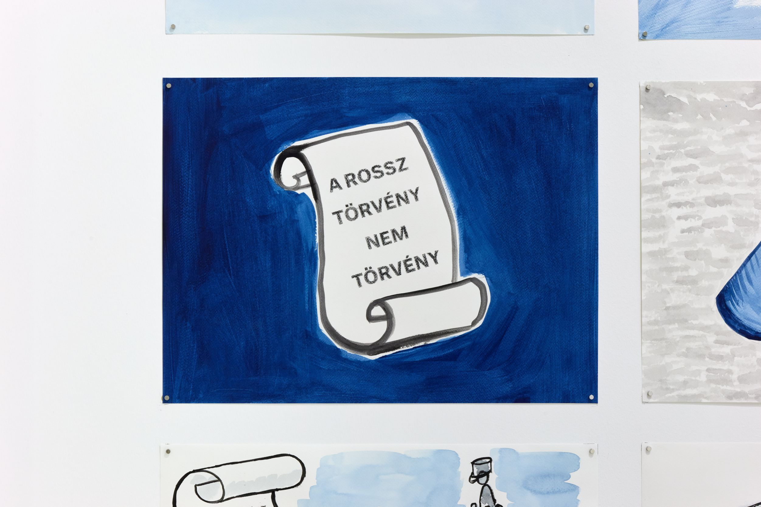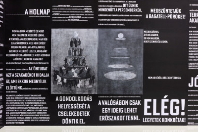 The exhibition of new collaborative works by Ferenc Gróf and Zsófia Gyenes evokes some of the forgotten shadows of the recent past that still haunt us today: the ultra-left opposition of the former socialism, the official revolutionary museum of the same regime, the Hungarian Museum of the Labour Movement, whose foundations have now been dug up and destroyed by an obscure neo-neo-Renaissance sect, and an anarchist theoretical work published as samizdat. The exhibition is a kind of glossary, a collection of phonemes of a grammar in need of reconstruction. One is not born a ghost, but becomes one".