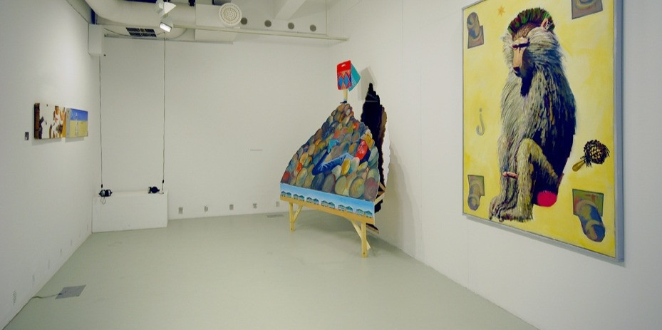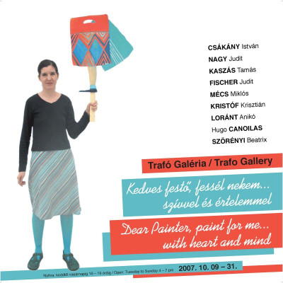 Quite seldom can visitors encounter paintings in Trafó Gallery. This is the exact premise of the present exhibition, when it poses the following questions: Why might it seem so that painting has been ousted from many contemporary exhibition spaces? Why is it so faintly present in the discourse on art? And, notwithstanding all this, how can it remain a contemporary medium while encircled by tradition and expectations. These questions are posed by artists, who are either not painters, or if they are, they consequently work in other genres and with other methods; thereby their approach to painting incorporates experiences in other fields. Through painting the exhibition also presents a kind of collaborative creative form that was engendered by the experience that the genre of painting, traditionally presumed individual, leaves just as much room for collective endeavours as the creators will. And what the artists of this exhibition believe in, usually collaborating in various formations anyway, is exactly not an interpretation of art that favours individual creative ambitions and marketability. Instead, they consider this exhibition a collective work that leaves room for mundane dialogue on art, which may be interpreted without the armour of theory. The exhibition’s title is an amendment of the title of German painter Martin Kippenberger’s (1953–97) work, Lieber Maler, mal mir ... Thus, it is a reference to one of the most definitive creative artists of recent times, who traversed genres, bringing rise to a mixture of conceptualism, attention towards the quotidian, and a kind of sensitivity devoid of any mannerism. The exhibitors crave the same extent of liberty. Painting enables them the same free, unrestricted relation as the “new” media and genres whose conditions are less determined. They view this work as their “contemporary”, using it as one of the several options available for non-commercial art. Thus, the “Dear Painter…” exhibition is an experimental zone whose inherent attribute is taking risks, a suspension of supposed security.