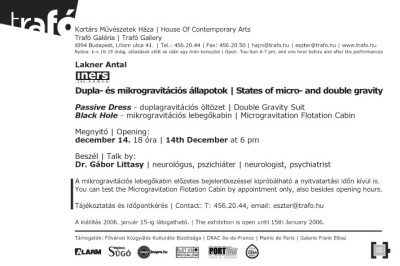 You need preregistration to visit the exhibition! Please, register via e-mail: hajni@trafo.hu; eszter@trafo.hu or on the phone: 456 2044.