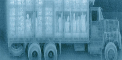 Mistral, Step-down and Asphalt (2002) are photographs taken by Esterházy himself in Marseille. No manipulation, no computers – just traditional photos. “These are situations as I found them, or plays on the surface”, as the creator writes about them. However, these hard to believe objects and their environment – ownerless shoes stepping down from the pavement, or the motorbike forced into a strange angle by the mistral – suggest setting in, manipulation and composition. But the only thing that operates here is the artist’s sensitive eye that received training from Lucien Hervé’s school. It is the “punctum” theoretically defined by Roland Barthes that exerts its effect on Esterházy’s pictures which may be called classical: details believed neglectable but being all the more captivating, the intensive effect on attention and “story-generation” of pictures picked out of their everyday context.