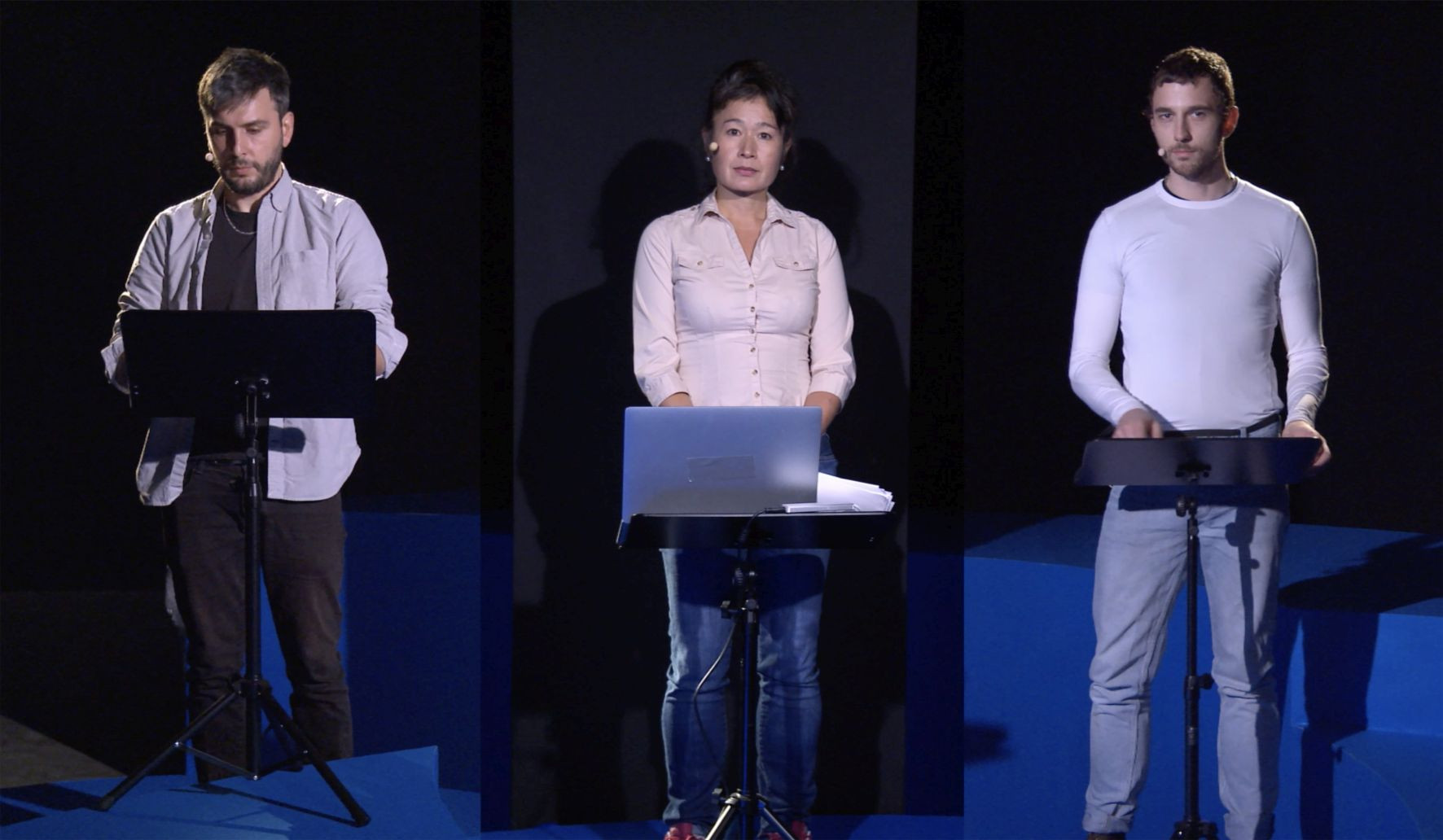 Képkredit: Giorgi Gago Gagoshidze, Hito Steyerl, Miloš Trakilović: MISSION ACCOMPLISHED: BELANCIEGE, 2019 (3 csatornás HD videó, environment, 47’23”) A művészek, az Andrew Kreps Gallery, New York és az Esther Schipper, Berlin/Paris/Seoul jóvoltából. © VG Bild-Kunst, Bonn 2023 © A művészek