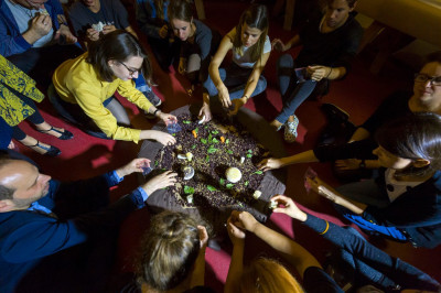 Az ötfelvonásos program során két képzőművész, egy designer, egy építészcsoport és egy filozófusduó víziója fűződik össze egy alapanyagokból, étkezési formátumokból és eszközökből építkező rituálévá.