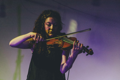 Az est másik fellépője a kandai hegedűs-énekes Jessica Moss, aki meghatározó alakja a montreali zenei életnek, a Constellation kiadó köré csoportosuló művészeknek a kezdetektől fogva oszlopos tagja és egyik alapítója a nagy múltú kanadai post-rock óriás Silver Mt. Zion zenekarnak, melyben férje Efrim Menuck is játszik. Jó barátnője és és egyben alkotótársa a Budapesten többször megfordult Carla Bozulich-nak, de játszott már a Trafót megjárt Matana Roberts szaxofonossal is, vagy az ugyancsak kanadai Big Brave katartikus feedback-zajrockot játszó zenekarral. A 2017-ben megjelent Pools Of Light című debütáló szólólemeze mindenképpen az egyik zenei csúcspontja volt a tavalyi évnek: elsősorban a klezmer által inspirált hegedűjátékát effektezéssel, loopolással és énekhangjával teszi teljessé, és az általuk megelevenődő történetek valóban a szívig hatolnak.
