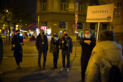 "A pandémia okozta közös létélmény az egyik kulcsa az előadásnak, ami egyszerre mozgatja meg a nézőket egyéni és közösségi szinten is. És itt a közösségit nem egy tág értelemben használom, hiszen akik elmegyünk az Idővonal előadásra, egy csoport leszünk, közelről látjuk egymást, együtt haladunk és éljük át az előadást. Ez a leírás igaz lehet egy sima nem-közösségi vagy nem-részvételi előadásra is, viszont itt megtörténik a többi néző-résztvevő jelenlétének a tudatosítása. Nem teszünk úgy, mintha láthatatlanok lennének a többiek."