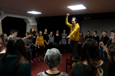 Az utolsó napon az InSite Drama vezetésével a résztvevőkkel közösen hasonlítottuk össze a korábbi napok tapasztalatait és lehetséges utakat kerestünk összeművészeti-nevelési projektek tervezésére.
