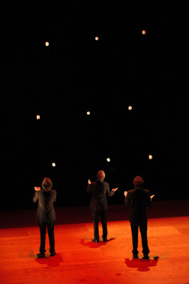 A Pan Potban a zenéé a főszerep, de a zongorista mellett játszik még egy raklapnyi fehér labda és három zsonglőr is. Pontosan számolnak az idővel, a ritmussal: ha a magas labda alatt nem áll senki, hogy elkapja, az csak azt jelenti, hogy még nem áll ott senki. A három előadó úgy mozog a labdák előre beprogramozott, fehér csíkot húzó, feszesen, pontosan, kiszámolt röppályáján, mintha a korzón sétálna. Átírják mind a zenei, mind a grafikus érzékelést. Bevallásuk szerint legnagyobb hatással a Maguy Marinnel, a Pina Bausch-sal és a Josef Nadj-gyal történt találkozás volt rájuk.
