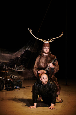 Egy zenész szarvas jelmezben és napszemüvegben hangulatot teremt a három farkas jellegű akrobatának, akik mindenre rámásznak, vagy folyamatosan tépik egymást. Lassacskán ez az „artista popkoncert” átalakul egy queer revüvé, lekerülnek a jelmezek, és elborulnak az agyak. Bevállalós, tele energiával, karakterekkel és színházzal.
