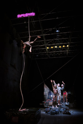 A profi cirkuszi tudásukat (kínai rúd, kötél, egyensúlyozás, akrobatika) szélsőséges világuk kibontására használják. Az artisták néha szép, máskor bizarr élőzenével vegyítve meghajlítják az újcirkusz határát a színház és a komédia felé; az eredményre pedig egyaránt fogunk emlékezni a szürrealitása és a bámulatos eszköztára miatt.