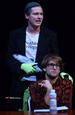 "Mert önmagunkat látjuk, önmagunk nem szeretett, el nem fogadott, likvidálni akart részét. Fekete Ádám Haloktatás, márványprotézissel c. második, a Trafó nagytermébe készített rendezése kegyetlenül zavarba ejtő, és épp ettől, ezért kegyetlenül vicces, igaz játék mindnyájunk önmagáról – ha van izomplasztikusságod az oxigénhiánytól, ha nincs. Mert hisz mind görcsösek, oxigénhiányos állapotúak vagyunk, vagy így, vagy úgy."