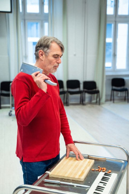 Kálmán Eszter látványtervező saját előadásaiban több éve kísérletezik különböző színházi eszközök előtérbe helyezésével. Most a hang, a zaj, a zörej, ezek narratív szerepe kerül fókuszba. A háztartási zajokból egy párkapcsolat hétköznapi, mégis meghatározó pillanatai állnak össze – egy házasság története hangban.