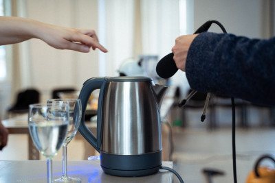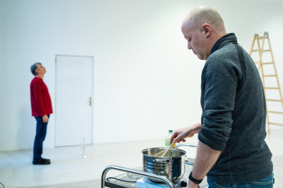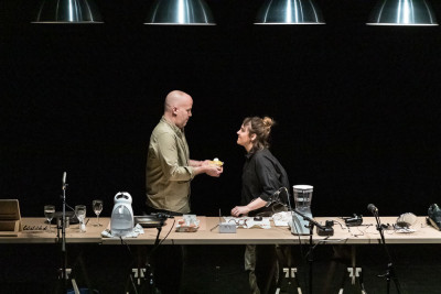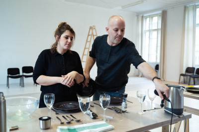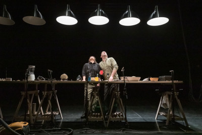 "Velük beszélgettünk az első Trafóban töltött próbanapjuk során házastársi hanggyűjtésekről, Beckett-rajongásról, zene és zörejek funkciójáról."