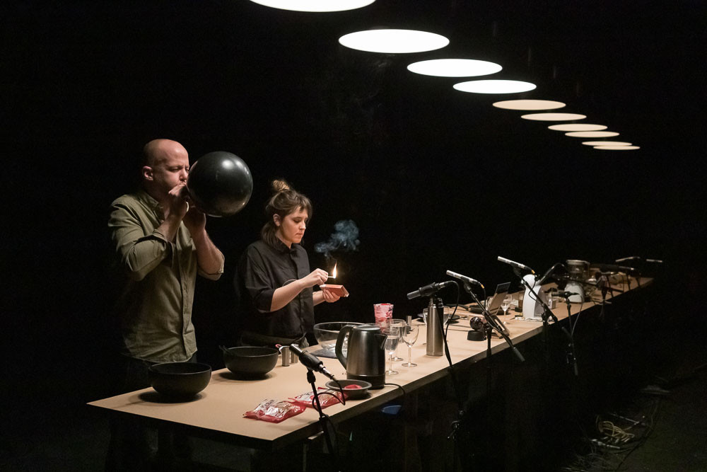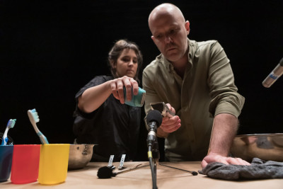 Kálmán Eszter, Matkó Tamás és alkotótársaik rendszeresen dolgoznak együtt különböző színházi munkákban, és most egy közös projekt keretében fedezik fel a hang rendhagyó lehetőségeit. A kísérleti előadás két formailag különböző részben foglalkozik a hangok és zörejek dramaturgiai szerepével, a hang és kép, a hang és előadó viszonyával, a hallás színházi élményével.