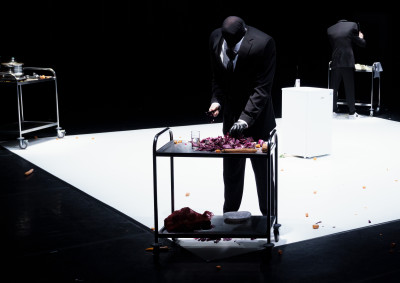 Két alak sajátos geometriai mintákat követve bejár egy teret. A tér bizonyos pontjaihoz hangok/hangszínek/hangerők rendelődnek, ami a karaktereknek és mozgásuknak “hallható” dimenziót kölcsönöz. Az így létrejövő előadás hangszerelése egy állandóan permutálódó, változatos hangkép. A munkát Samuel Beckett Quad I+II című szavak nélküli drámája ihlette.