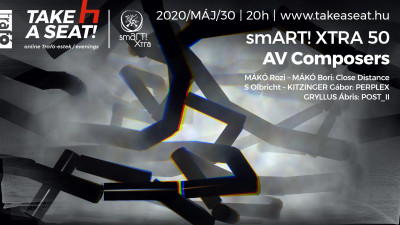 Az AV Composers, a 2015 és 2020 között havonta jelentkező smART! XTRA sorozat 50. befejező része és a Trafó megújuló smART!-programjának egyik új formátuma rendhagyó módon debütál a Take a Seat! nézőterén. Május utolsó hétvégéjén a Loop Gallery egykori kirakatgalériájában bemutatott Perplex (S Olbricht - Kitzinger Gábor), a karanténlét heteiben született Close Distance (Mákó Rozi - Mákó Bori) és POST_II (Gryllus Ábris - Molnár Csaba - Nagy Marcell) c. két új videóinstallációt nézhetik meg az érdeklődők. Jegyutalásukkal pedig a Farbwechsel Records kiadót támogathatják.