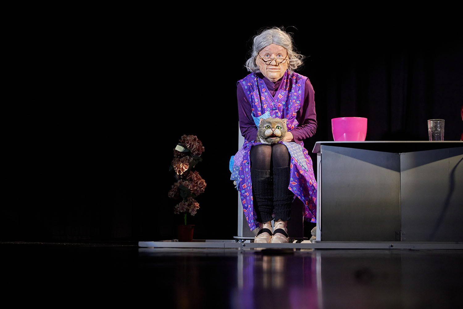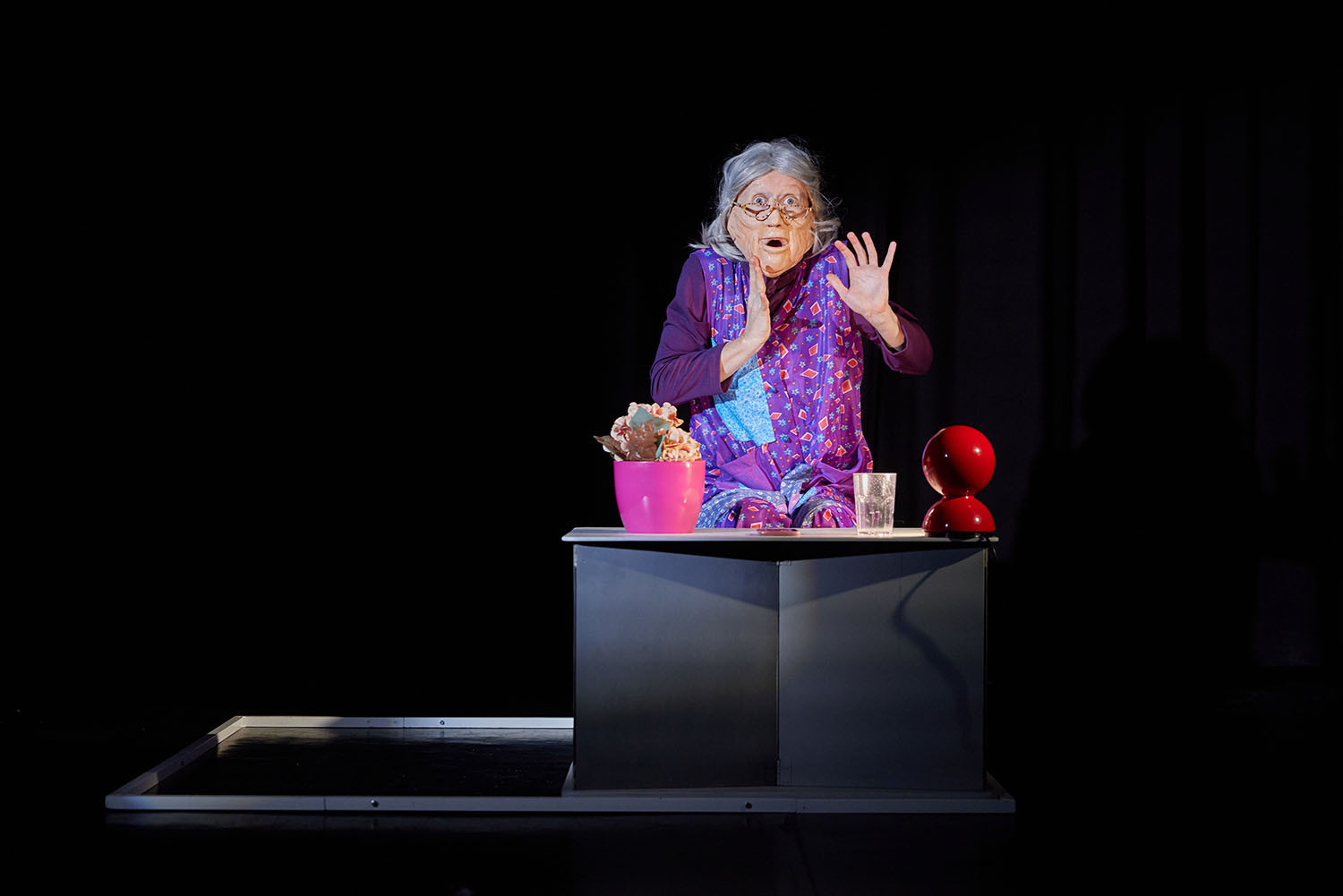 Szöveg nélküli mozgásra, gesztusokra és bábszínházi elemekre építő előadás. Góbi Rita és Somogyi Tamás célja, hogy az időskorra, a magányra és az emlékekkel való szembenézés kérdésére humorral és emberséggel tekintsen, a nézőket pedig elgondolkoztassa arról az életszakaszról, amely mindannyiunk életében be fog következni.