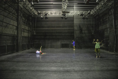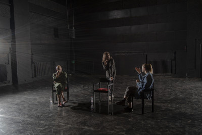 Próbáltuk az ellenkezőjét: valami mást csinálni, valahogy máshogy csinálni, megválaszolni a kérdést: mit tehet három alkotó gyökeres változásért az utolsó órában? Két irány közé szorultunk. Egy résbe, a mindent felforgató változás és az állandóság között. Egy sötét terembe, ahol kihúzzuk a talajt a lábaink és a lábaitok alól, hogy aztán megtegyük az első lépést.”