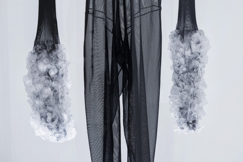 Vass Csenge kutatásának tárgya az ember és a véletlenszerűség tapasztalatát kínáló természeti jelenségek közötti viszonyrendszer feltérképezése. A Morphogenesis installáció eltérő karakterű anyagokból készült, végtagok nélküli testformákat és organikusan változó, kristályosított oldatokat rejtő kapszulái az anyag- és formaminőség kontrollálhatatlanságát szemléltetik.