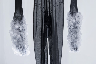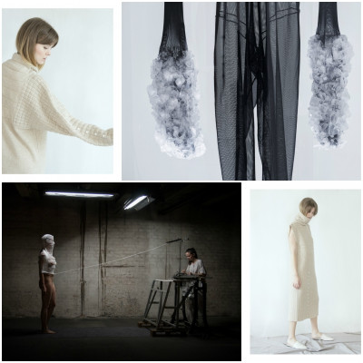A kortárs textilművészet fókuszában mindinkább az anyagszerűség (újra)felfedezése, az emberi érzékelés és a természeti kölcsönhatások állnak. Akárcsak a MOME friss diplomás textiltervezőinek mestermunkáiban, melyek között egyaránt találhatunk az emberi testet adaptívan körülvevő interfészekként működő öltözékeket, a kristályosodás jelenségét megragadó konceptuális testhéj-struktúrákat, valamint jelmezközpontú performanszokat és videóinstallációt is.Lévai Zsófia experimentális kollekciója az emberi érintkezést alapul véve mutatja be, hogyan tud egy öltözék filterként viselkedni ember és külvilág, ember és technológia, ember és ember közötti interakciókban. Az Interknitting a legújabb technológiai innovációkat – smart tech, e-textil, szenzorok – a matéria szerves részévé teszi kötött struktúrákba integrálva azokat, különböző érzékszerveinket aktivizálva.