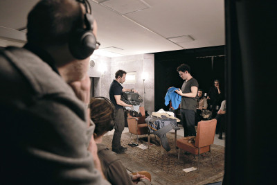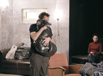 "Egy szokatlanul realisztikusra megcsinált díszletet látunk (látvány: Fekete Anna). Tapéta van a falon, szőnyegek, sőt még az óramutatók is mozognak, csak a családi fénykép rajzolt és hamis, jelezve talán a cselekmény középpontjában álló hiányt."