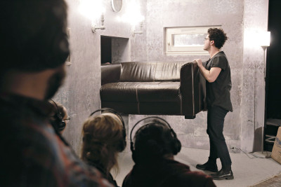 A történetmesélés két síkon zajlik: a színpadi cselekményt a nézők fülhallgatóiban szóló hangjáték kíséri, ami egyrészt szintén mesél a maga módján, másrészt egy élményszerű rétege az előadásnak, ami nélkül nem is értelmezhetők a látottak.