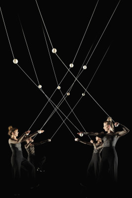 Harmadik típusú zsonglőrködés? Az előadás alapvetően kettősségekre épül: taszítás-vonzás, fény-sötétség, káosz-rend, fekete-fehér. Az újmágia és a zsonglőrködés műfajából egyaránt táplálkozó darabot áthatja egyfajta misztikum: mintha alkotói a világ működését igyekeznének leképezni, és leleplezni az emögött rejtőző titkot. Mindezt éteri zene kíséri, amely egyszerre tartalmaz nyugtalanító disszonanciát és emberen túli letisztultságot. A látvány pedig lélegzetelállító: négy zsonglőr a sötét térben fehér gömböket manipulál, különböző geometriai alakzatokat formálva, melyek hol lebegnek, hol forognak, hol táncra kelnek Thomas varázslatos és finoman pontos univerzumában.
