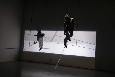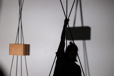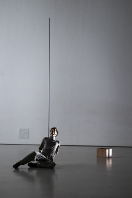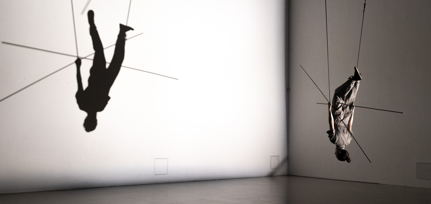 A vasrúd csak vékony bőrön át érezhető törékenysége. Meditatív mozgás-installáció, retinába tapadó képek.