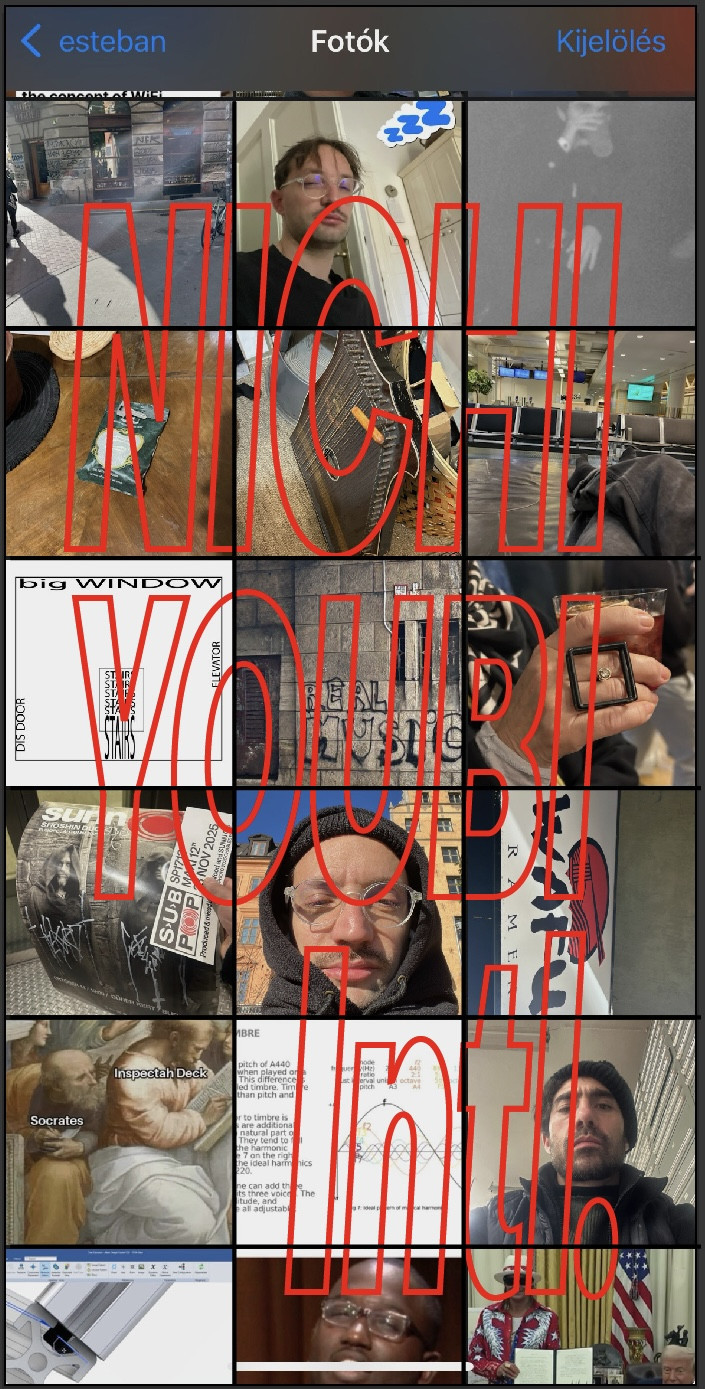 Nichiyoubi (aka Bartha Márk & Esteban de la Torre)A Nichiyoubi Intl. Esteban de la Torre és Márk Bartha elektronikus zenei duója és audiovizuális projektje, amely a hang és az észlelés határterületét tárja fel. A két művész érdeklődéséből kiindulva a projekt olyan környezetet teremt, amely folyamatos, tudatosságra hangolt kibontakozáson keresztül fejlődik. A Nichiyoubi Intl. éteri átfedésekkel rétegezett hangvilágokon keresztül a közönséget a időbeliség határán lévő, múlékony térbe csábítja – egy rezonáns sodródásba a kontemplatív önelemzés felé.