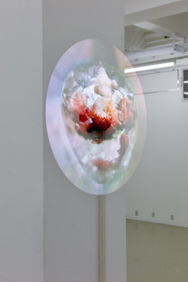 Dorota Gawęda és Eglė Kulbokaitė kiállítása egyszerre invitálja és izolálja a látogatókat, akiket a köztesség és az átmenetiség zónáiba vezeti be. A valós tér és az online tér közé, az anyag és az információ közé, a természet és annak generált leképzése közé, az elbeszélés és az elmélet közé, egyéni és kollektív tapasztalatok közé. A kiállítás kiindulópontja egy korábbi kollektív tapasztalat emlékét őrző illat volt; a művészek egy performanszának molekuláris replikája, illékony lenyomata. Ez az illat további elemekkel - organikus installáció, egy mesterséges intelligencia által generált videó, hang-installáció, objektek - kiegészülve egy különös, egyszerre organikus és fémesen rideg spekulatív környezetté változtatta a galéria magányosan maradt terét.