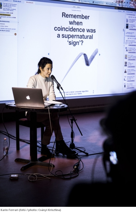 Karin Ferrari Bécsben élő képzőművész, aki munkáiban a pop-kultúrában, a szórakoztató iparban és a közösségi médiában felfedezhető szimbolizmust kutatja. Dekódolás (A teljes Igazság) című online sorozata videoklipek és tv adások rejtett üzeneteit fedi fel. Ausztriában és külföldön olyan intézményekben állított ki, vagy tartott előadást, mint a V. Moscow International Biennale for Young Art, az Amsterdam Drawing, a brüsszeli Királyi Katonai Múzeum, a linzi  Ars Electronica fesztivál, vagy bécsben a 21er Haus - Museum for Contemporary Art, a Kunsthalle és az Akademie der Bildenden Künste.